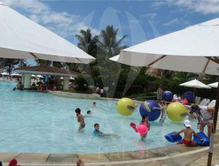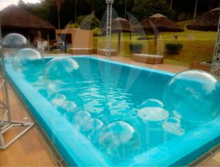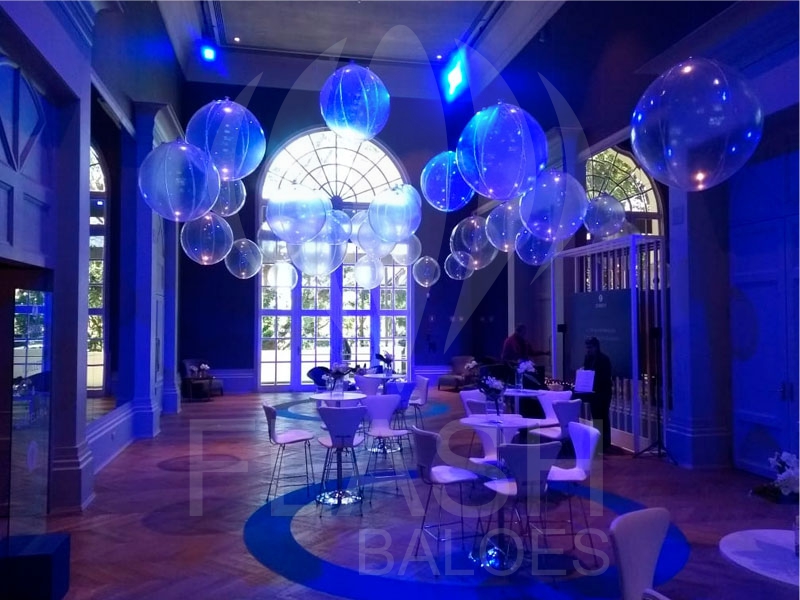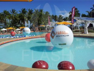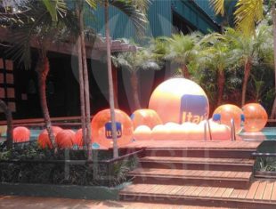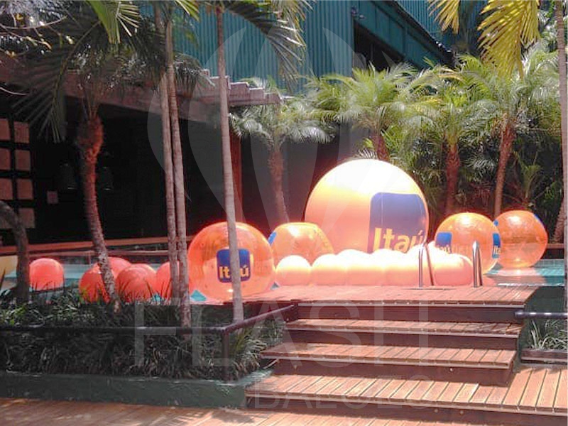 Confeccionadas em PVC pneumático, essas bolas infláveis podem também ser utilizadas como peças decorativas, penduradas ou atracadas ao chão, completando o layout da marca e a estética geral do espaço.